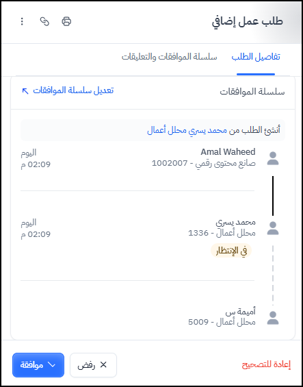 ملحوظة: يمكن تعديل سلسلة الموافقات وتغير المسؤولين المتواجدين بها.