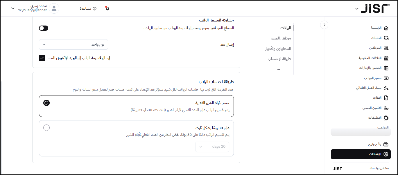 أهمية وجود خيار للمستخدم حساب الرواتب حسب الأيام الفعلية أو شهر 30 يومًا