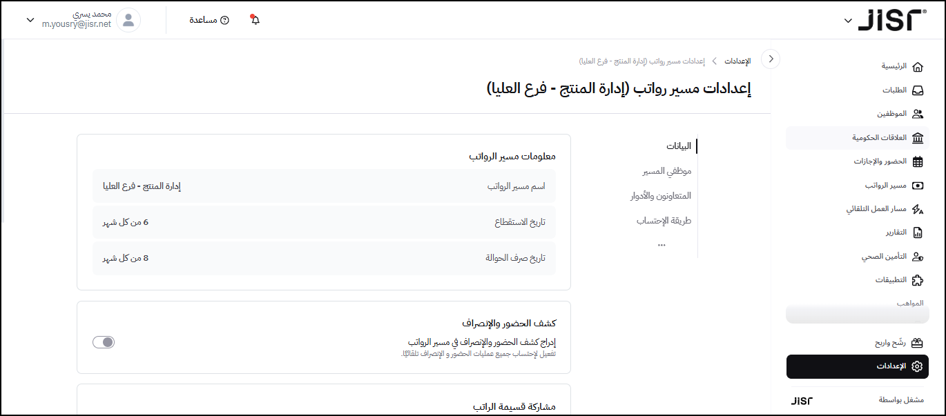 3- الشخص المفعل له صلاحية "إعدادات مسير الرواتب" يمكنه تغير طريقة الاحتساب في المسير المُفعل له فقط.
