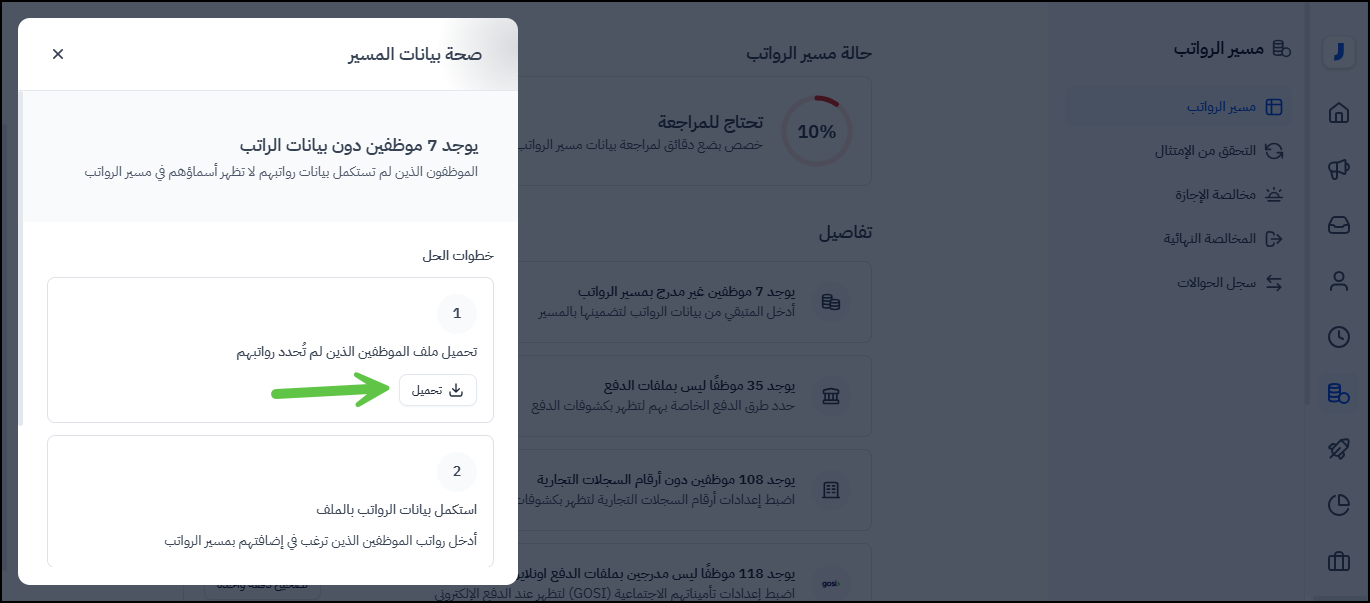 على سبيل المثال: يوجد عدد X موظفين غير مدرج بمسير الرواتب.