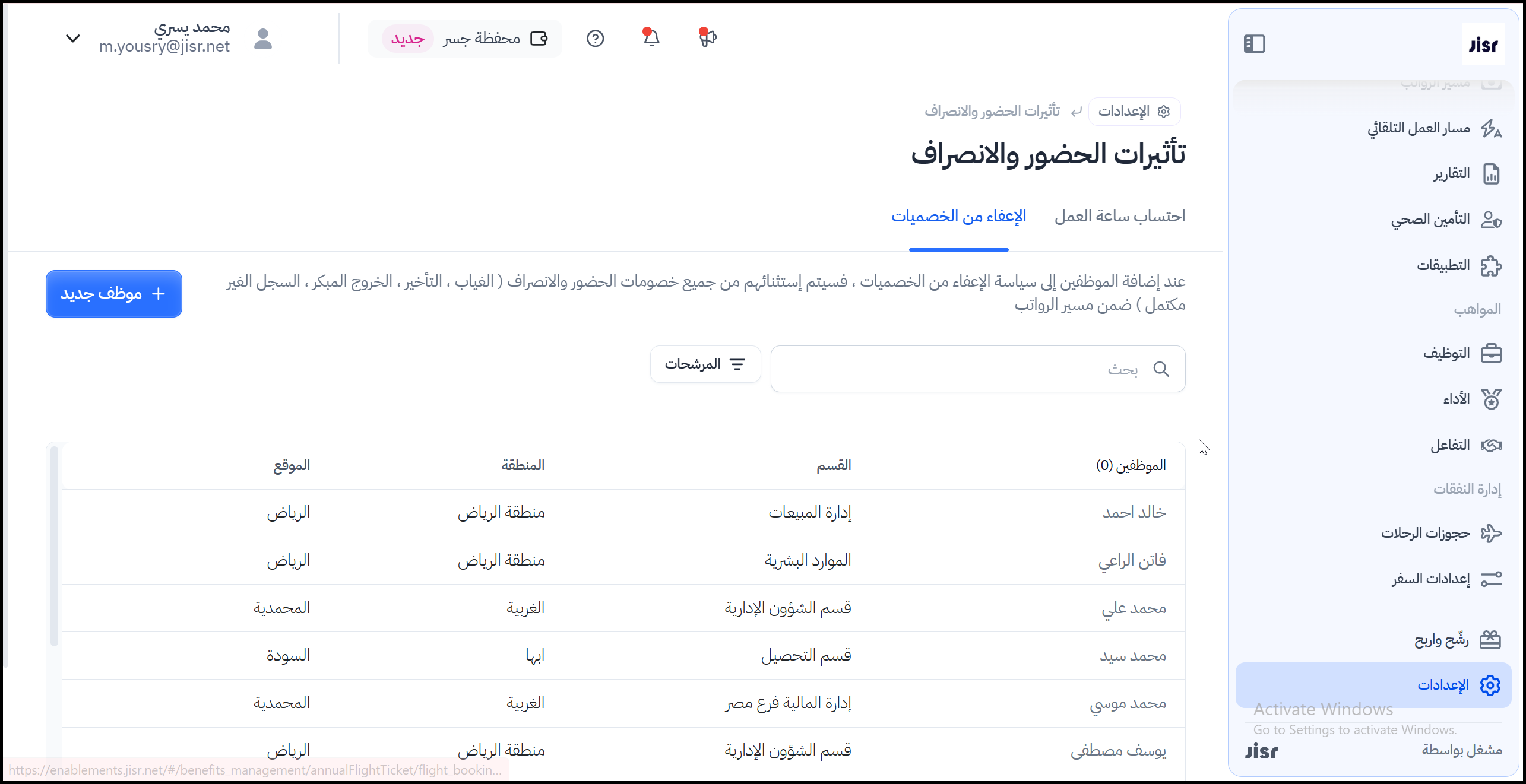 ملحوظة: يمكن إعفاء أحد الموظفين من جميع خصومات الحضور والانصراف ( الغياب ، التأخير ، الخروج المبكر ، السجل الغير مكتمل ) ضمن مسير الرواتب من خلال إضافة الموظف في تبويب "الإعفاء من الخصميات" في تأثيرات الحضور والانصراف