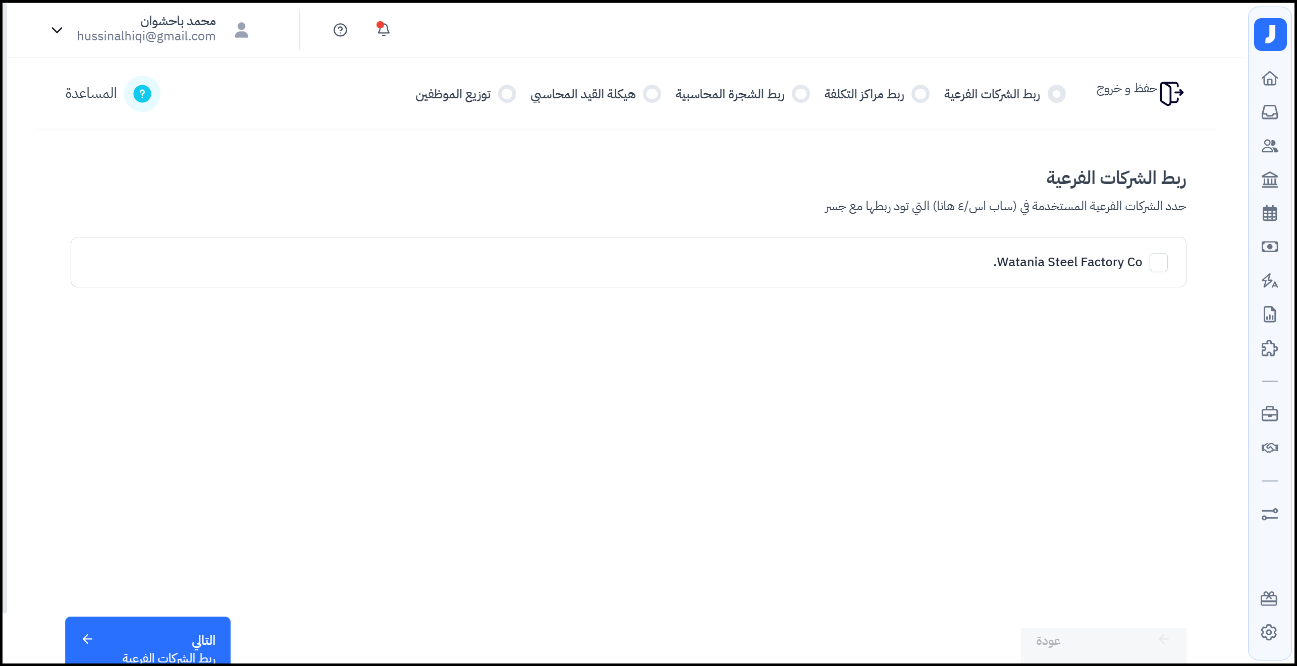 2- قم بالنقر على التالي للبدء في ربط الشركات الفرعية التي تم تحديدها.