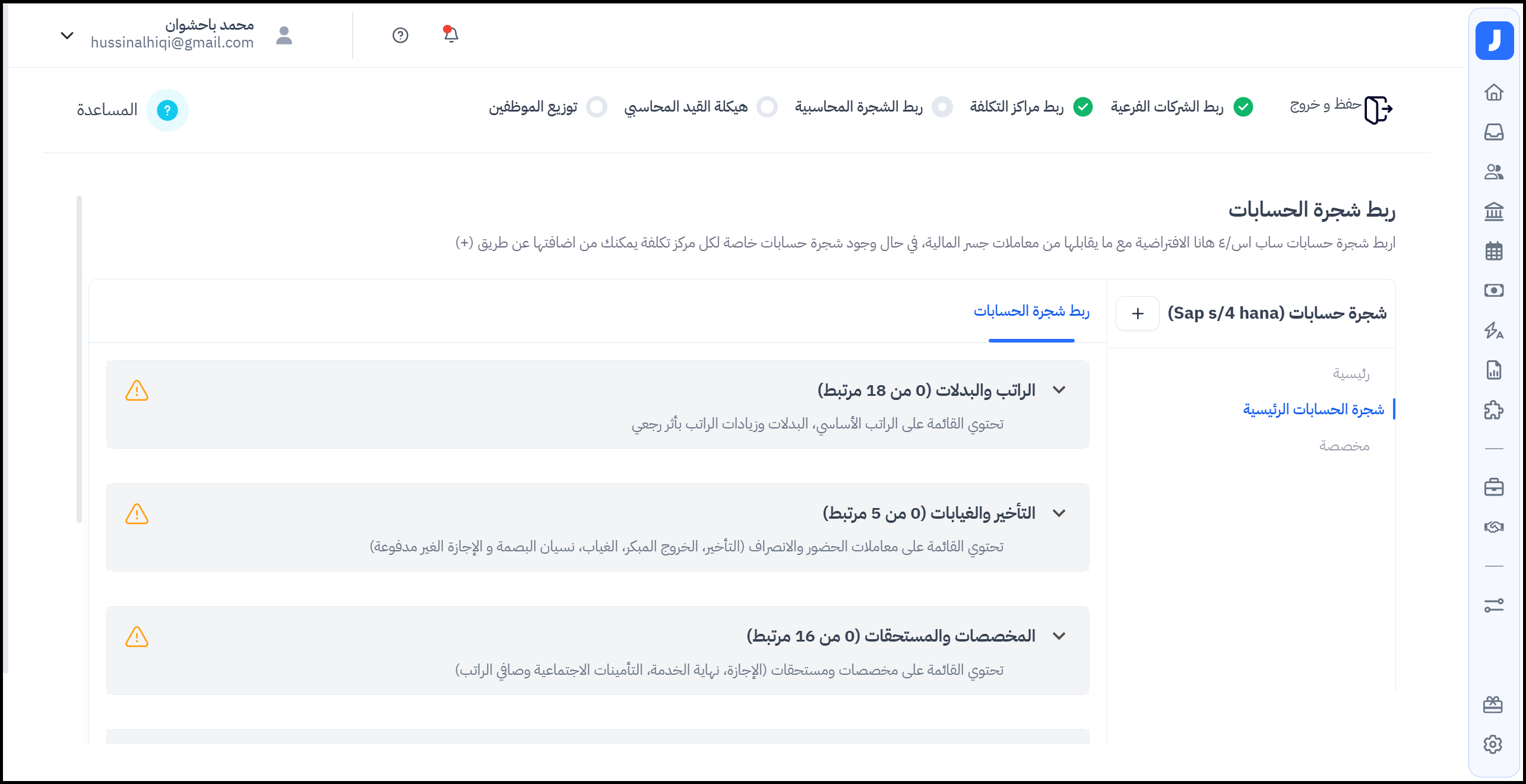 في هذه الخطوة ، يستلزم ربط شجرة حسابات نظام ساب الافتراضية مع ما يقابلها من معاملات جسر المالية.