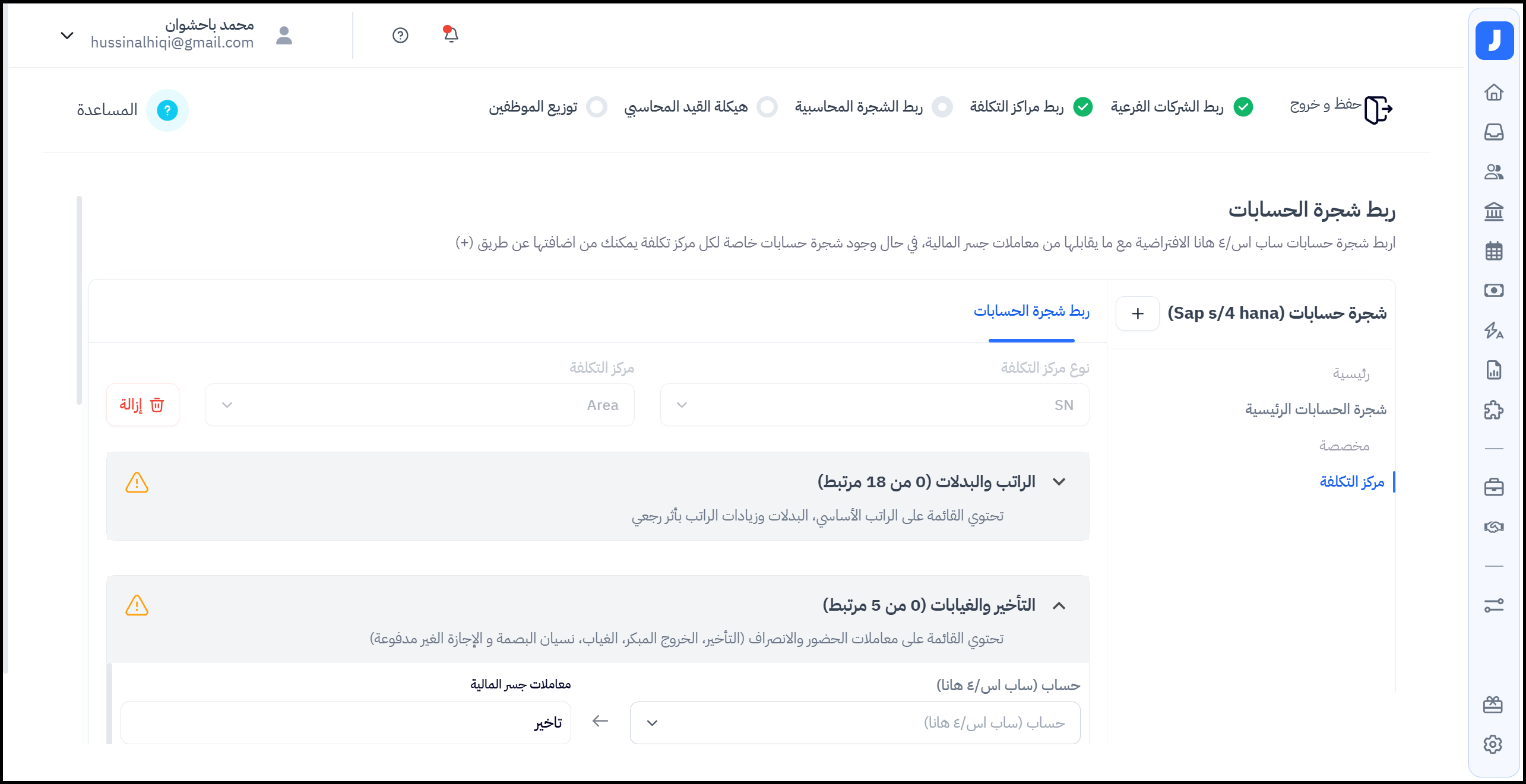 يمكن للمسؤول إجراء عملية الربط على مستوى مركز التكلفة أيضاً.