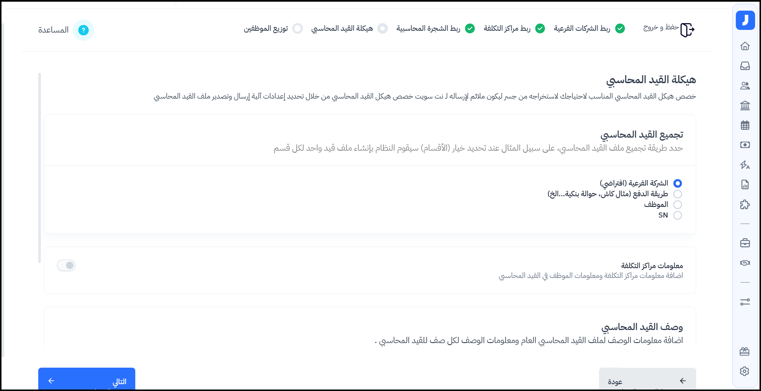 بالإضافة إلى أن هذا الخيار يساعد في تحديد طريقة تجميع ملف القيد المحاسبي، وفصله بناء على الإختيار الذي تم تعيينه.
