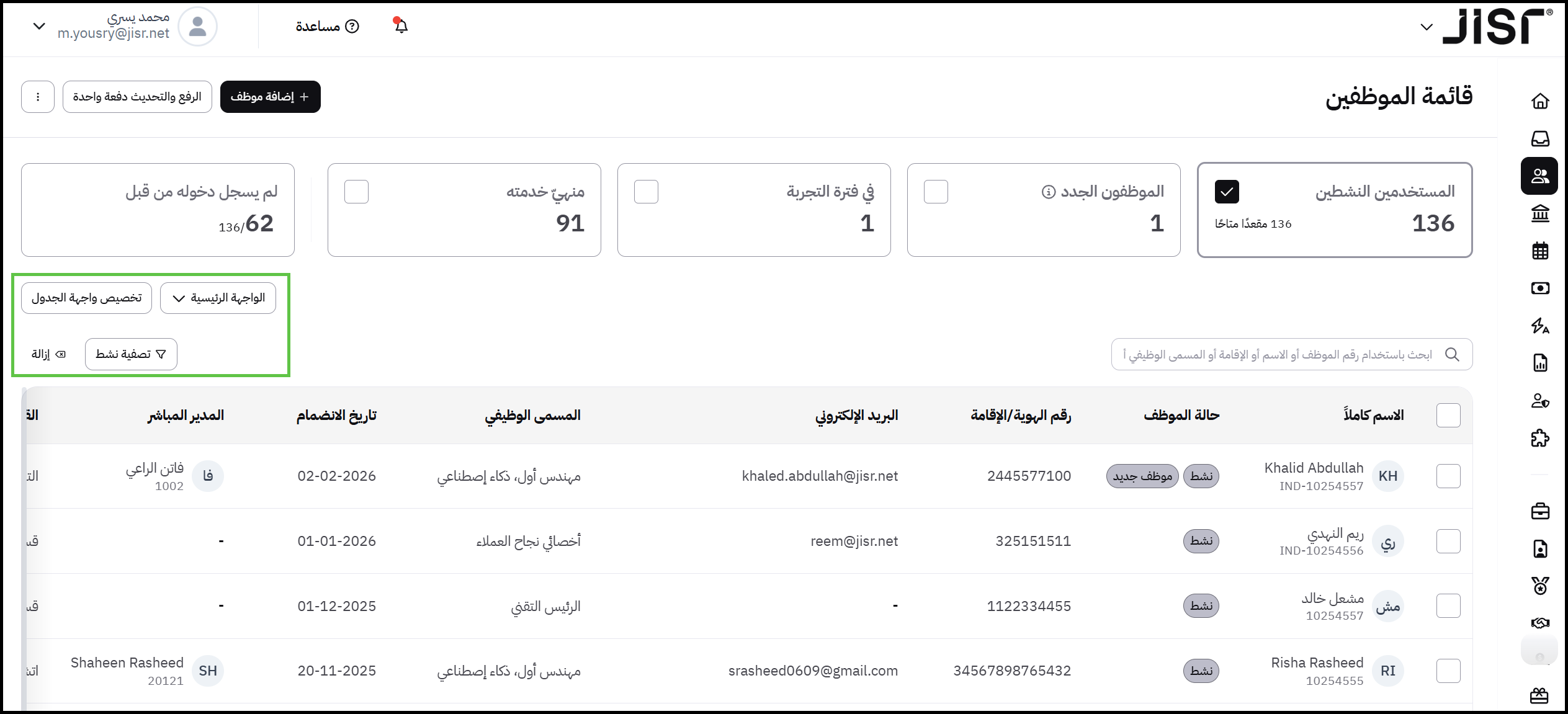 أطلقت "جسر" خصائص تُركز على المرونة في عرض البيانات وتحسين كفاءة الإجراءات الجماعية. تهدف هذه الخاصية الجديدة إلى حل مشكلة عدم القدرة على تخصيص البيانات المعروضة وتصدير قوائم الموظفين المفلترة بدقة.