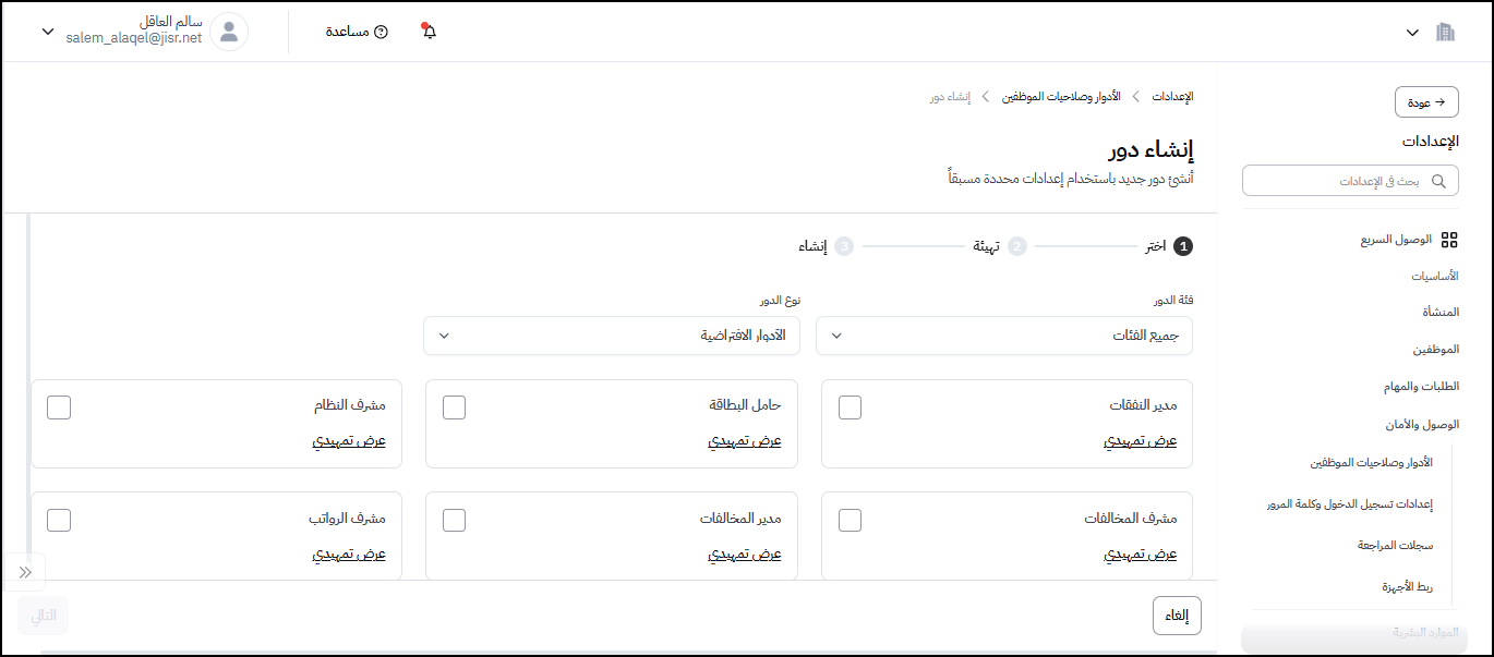 ٣. إنشاء أدوار باستخدام قوالب جاهزة