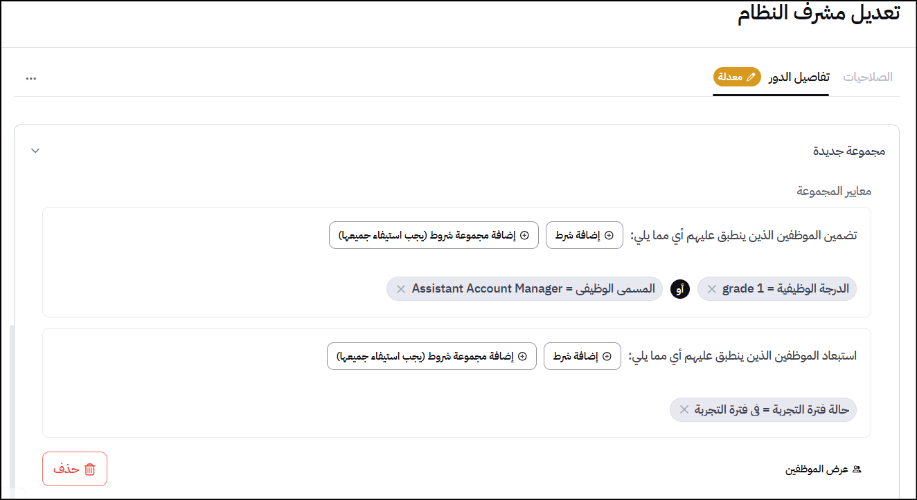 ٥. تحكم دقيق في الوصول إلى البيانات: اختيار مجموعات الموظفين في نطاق الصلاحية