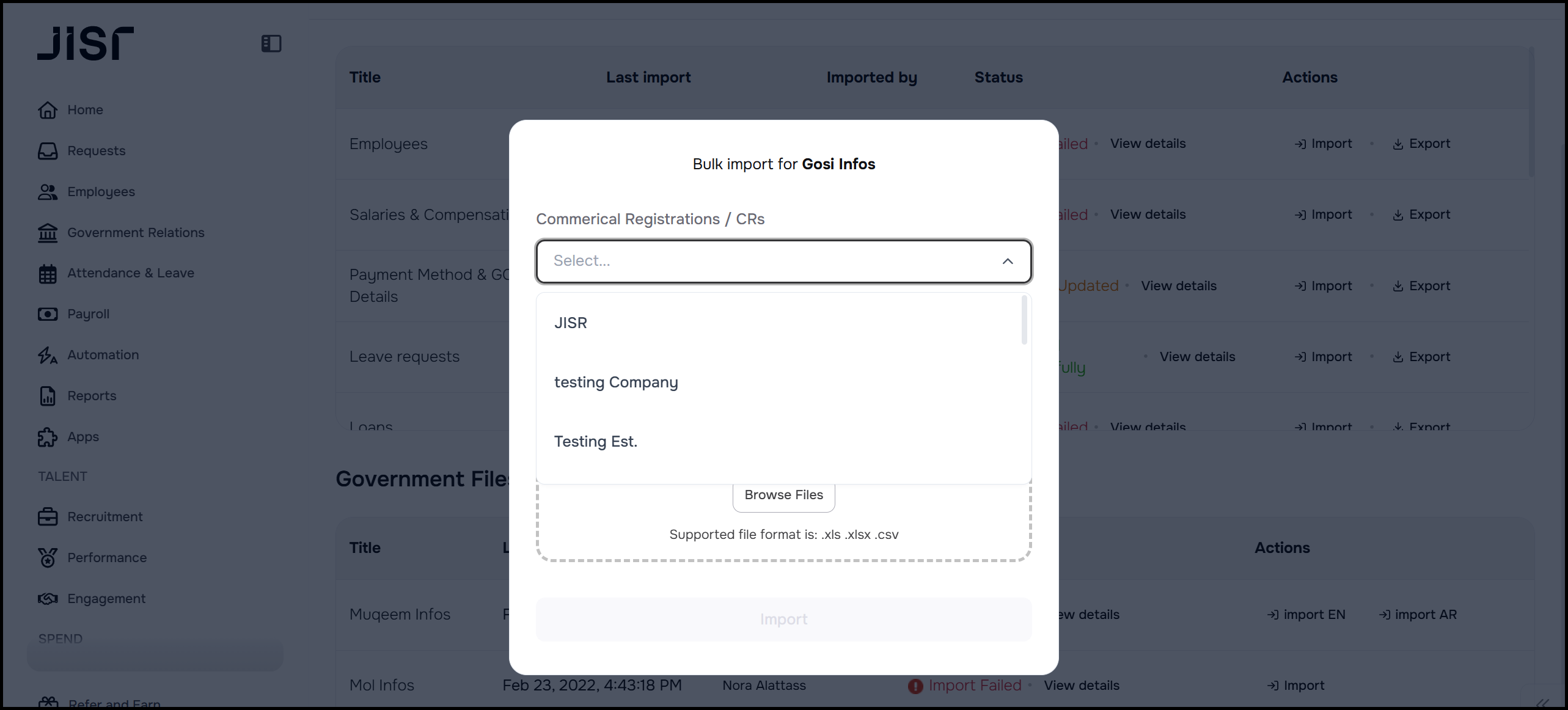 Ensure 100% sync with GOSI. And Match employee information between Jisr & GOSI.
