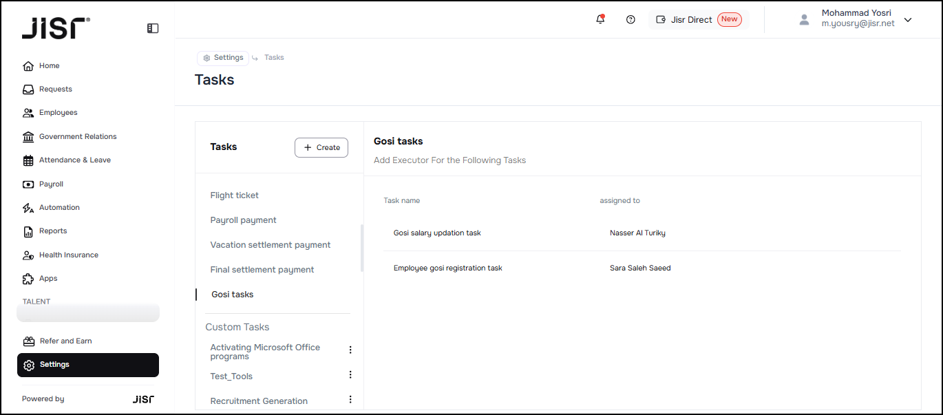 B- Showing notifications with the possibility of assigning a task or adding an employee to Jisr or modifying his National / Iqama ID at his profile in Jisr, in case there are some of the employees registered on Gosi and not registered on Jisr and vice versa.