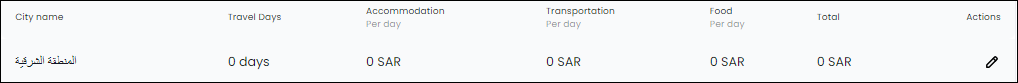 The system administrator must define the amount of daily accommodation or lodging + the amount of transportation + the amount of food for each day, if any) according to the establishment’s policy, for each destination affiliated with each policy, by clicking on the pencil icon in front of each destination.