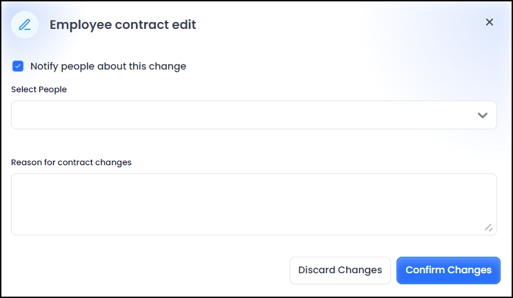 Note: After confirming the modifications he made to the contracts, the user can allow him to notify managers or the employee himself of this modification by activating the "Notify people about this change" indicator and selecting the people by clicking on "Select People".