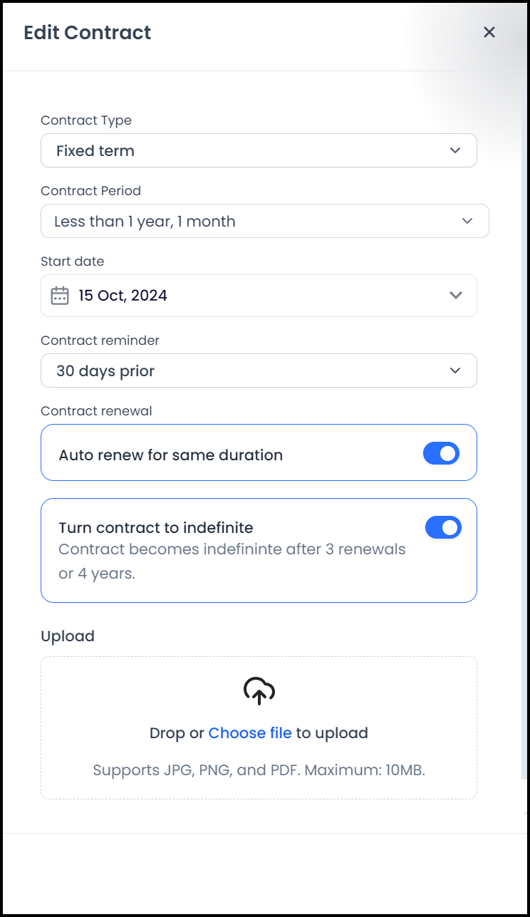 6- Edit the contract duration or add an attachment, then choose Save Changes.
