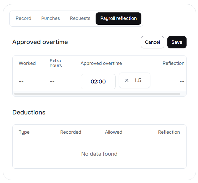 Add ( approved overtime in hours & minutes ) and select ( Hourly rate x1.5 or x2 ).