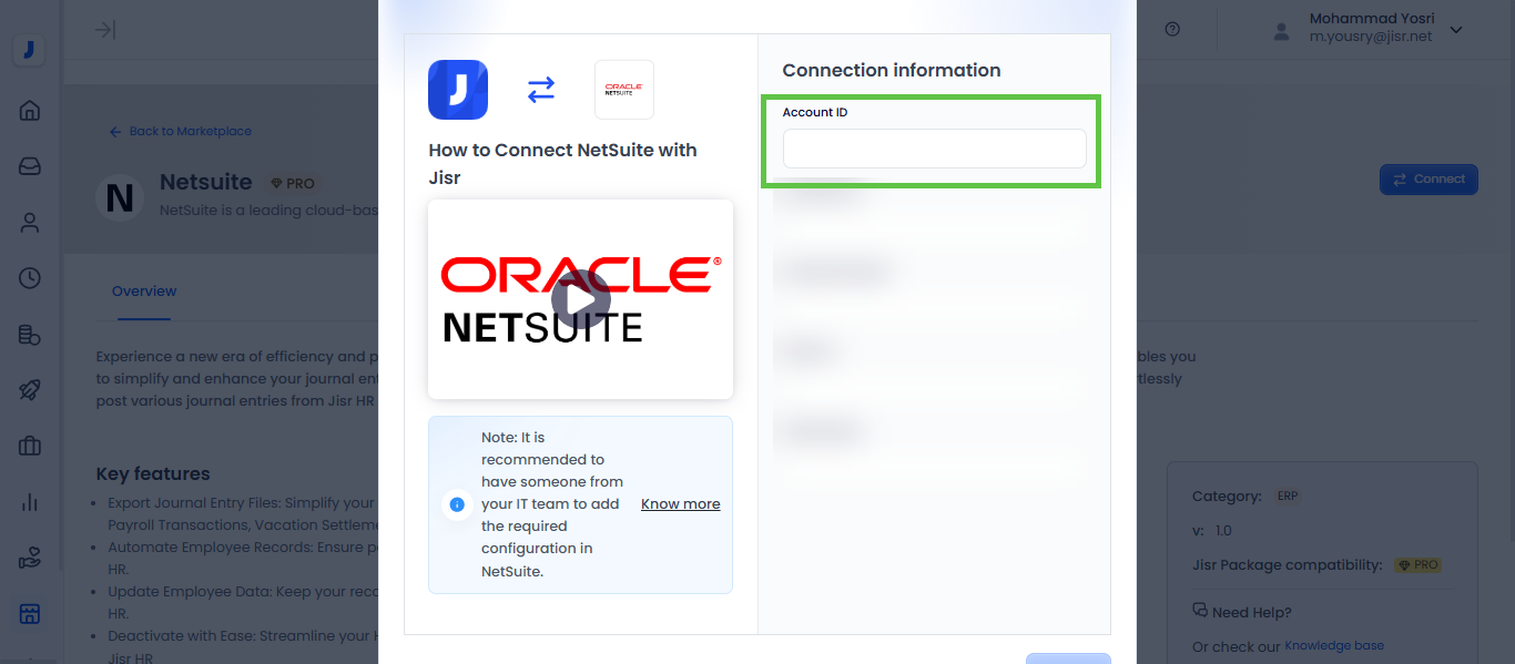 It is recommended to have someone from your IT team to add the required configurations in NetSuite or someone in your company who has admin permissions access to both of your accounts ( JisrHR and NetSuite ).