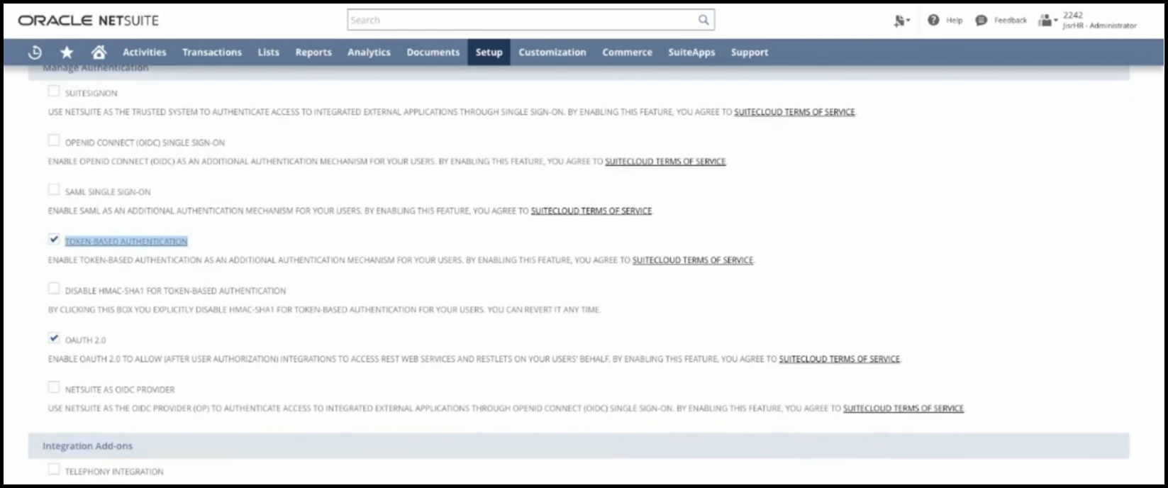 Step 2: Create an integration record for the JisrHR-NetSuite integration: