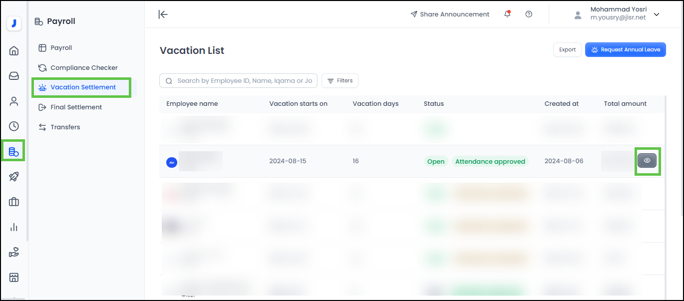 On the left side menu, Head over to Vacation & Final Settlement > Final Settlement > Approved Tab > Select the required Settlement > click on View details.