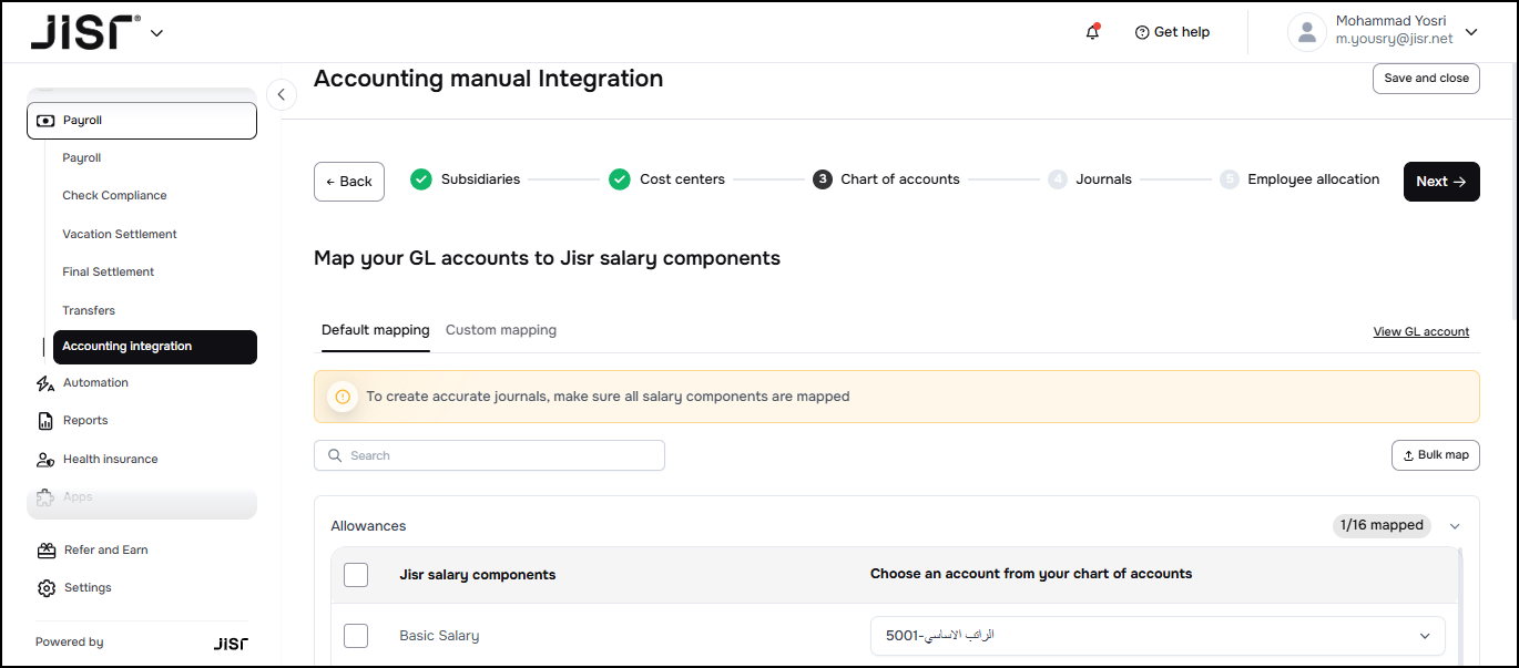 This section will include all the fixed salary elements for the employees, and you can link each one of them to its perspective account, or link them all to the same account as per your company's need.
