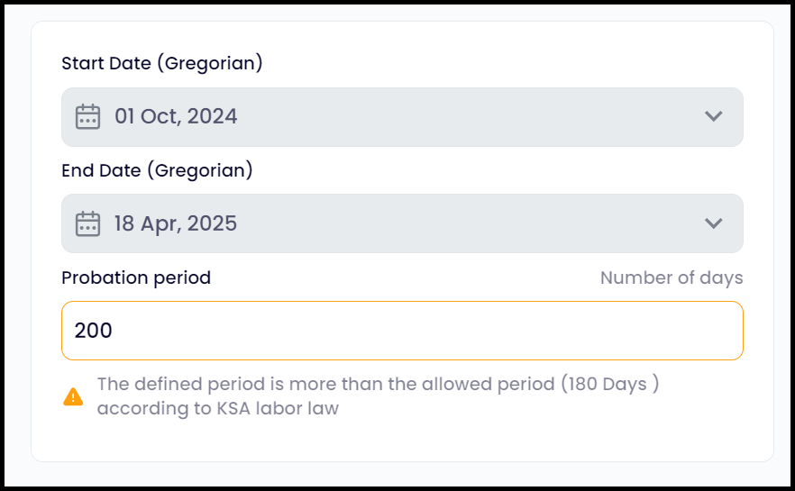 "If the worker is subject to a probationary period, this must be explicitly stated in the employment contract and clearly specified, so that it does not exceed ninety days. The probationary period may be extended by written agreement between the worker and the employer, provided that it does not exceed one hundred and eighty days. Eid Al-Fitr and Eid Al-Adha holidays and sick leave are not included in the calculation of the probationary period. Each party has the right to terminate the contract during this period unless the contract includes a text that gives the right to terminate to one of them."