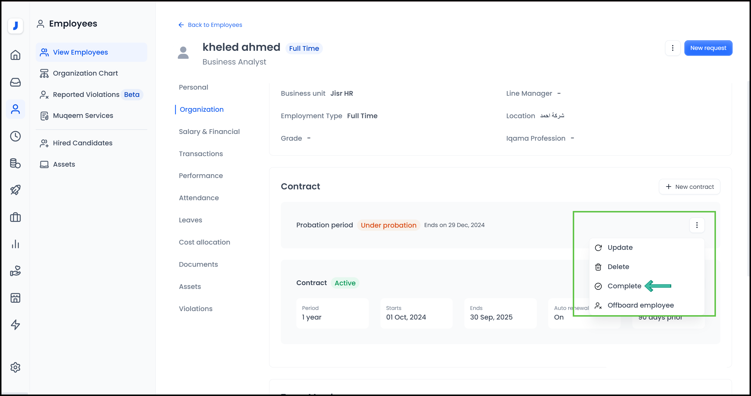 In the event that the system administrator wishes to confirm that an employee has successfully passed the probationary period on the system before completing the period agreed upon under the employment contract between the two parties, this can be done by following the following steps: -