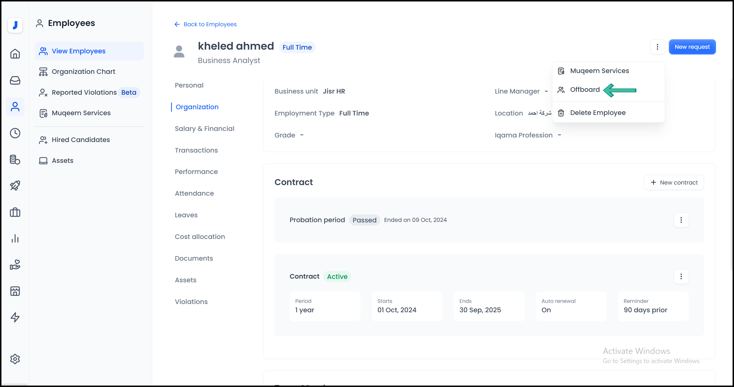 Therefore, in order for the Jisr system not to calculate the employee’s end-of-service reward: