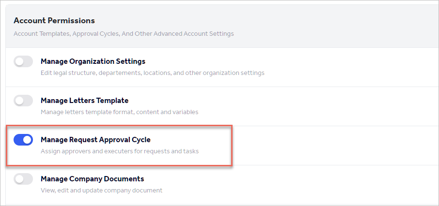 Only users with permission: ” Account Permissions - Manage Request Approval Cycle ” Can define a custom request type & its Approval Cycle.