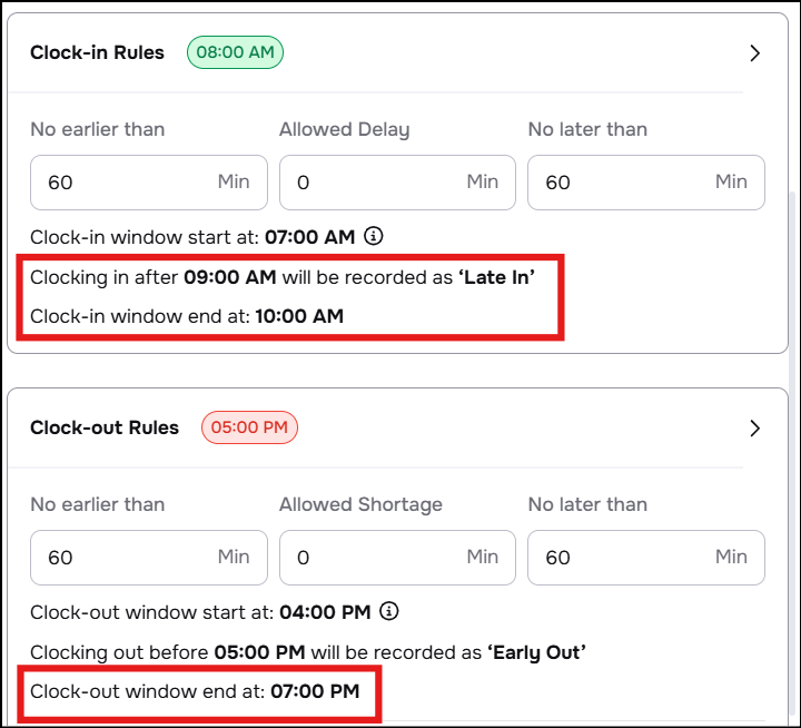 Note: The maximum flexibility allowed in the system is 360 minutes (6 hours).