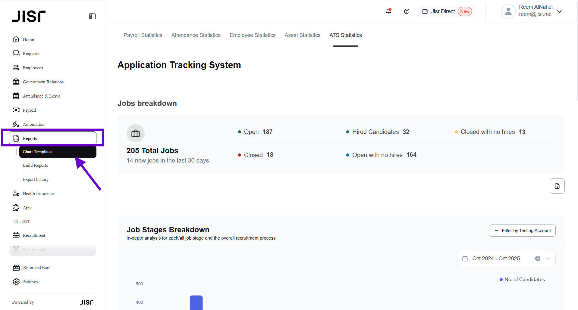 To access the ATS Statistics & Reports, please follow the steps mentioned below: