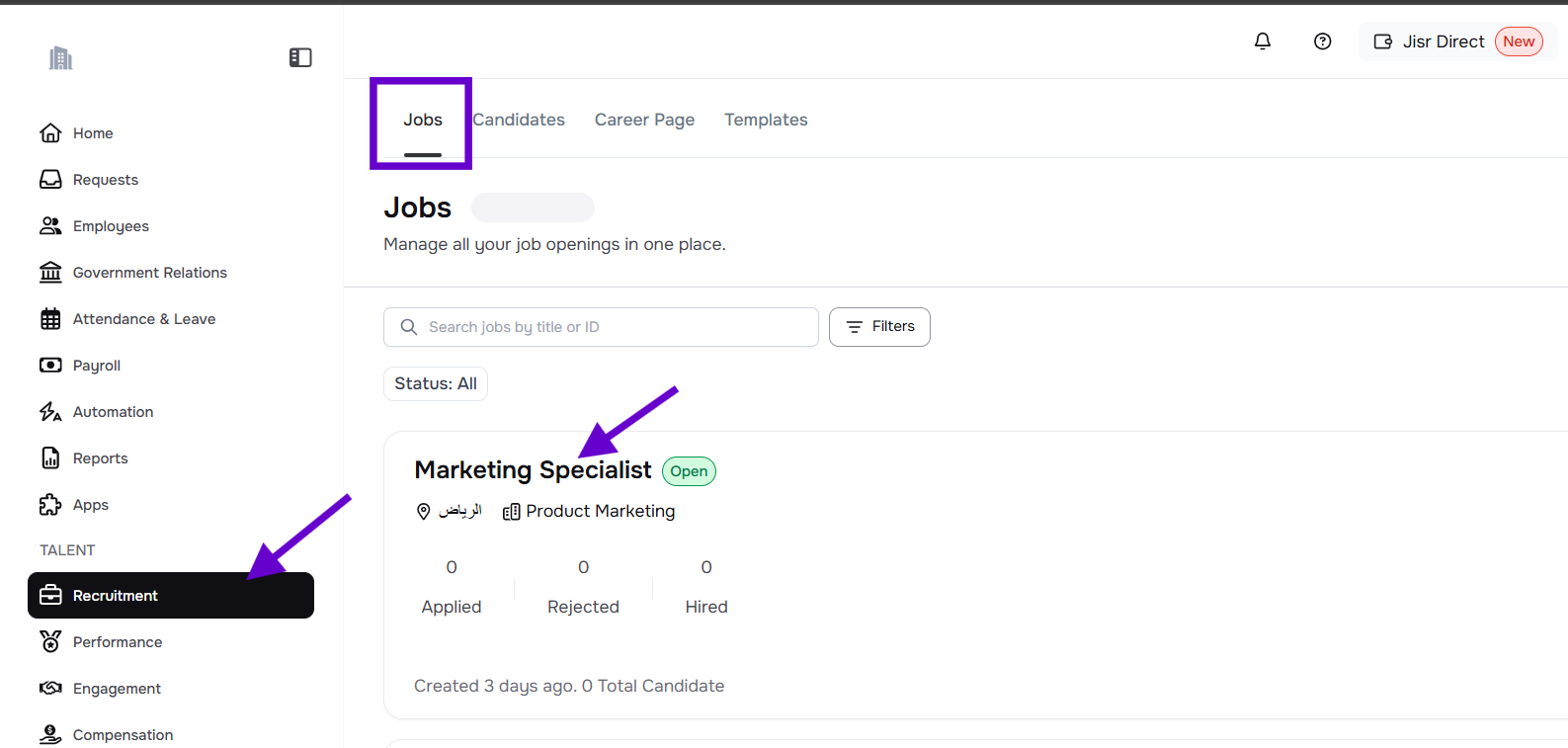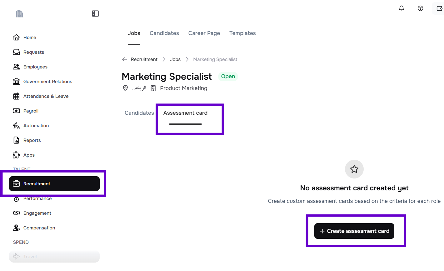 2. In the 'Jobs' section, choose the specific job for which you wish to create the assessment card.