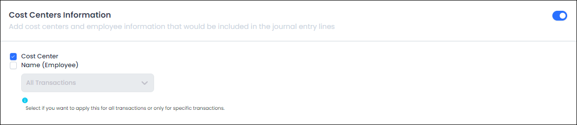 Note: When an employee's "Department" or "Location" field (which dictates their organizational unit) is updated in the HR system, their assigned "Cost Center" is automatically changed to the corresponding cost center linked to the new department/location.
