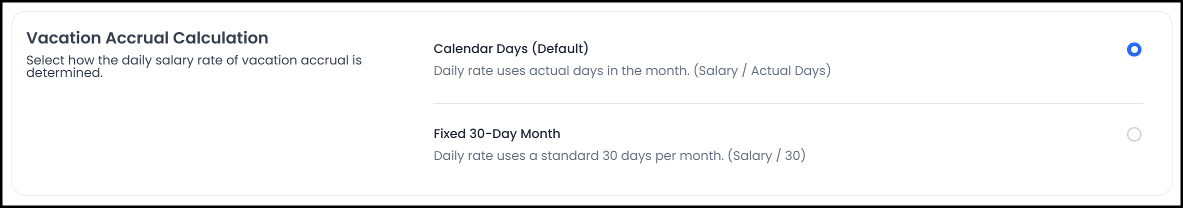 The User can also choose to calculate Vacation Accrual