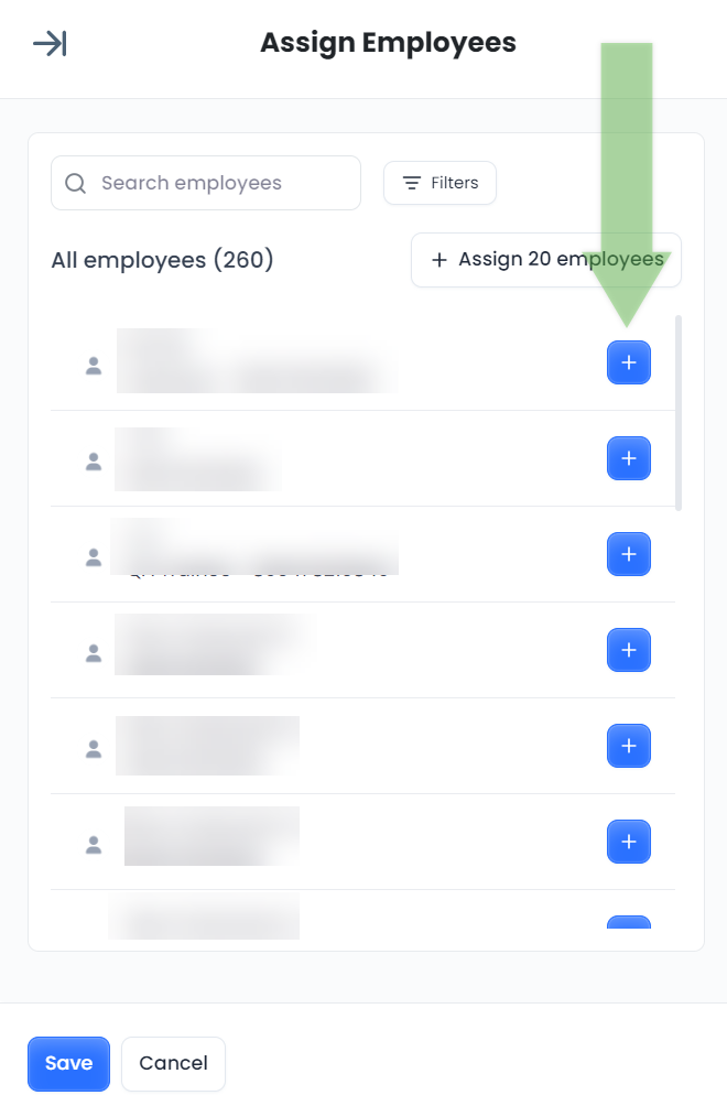 Assign employees from the list or search for them.