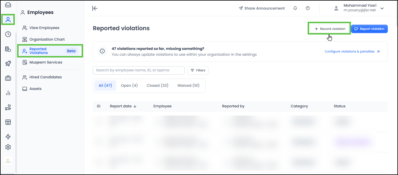 Answer: The differences between recording a violation and reporting a violation can be further detailed in the following article "An Overview of Applying Penalties for Labor Law Violations in Jisr".
