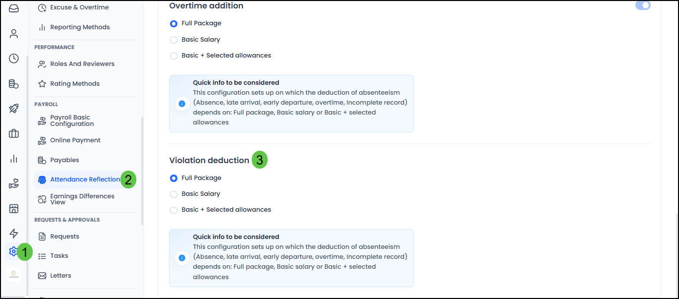 Answer: Yes, taking actions with deductions can impact the employee's payroll system if the action involves deducting a percentage of the daily wage or deducting a certain number of workdays. You can find more details in this article "The impact Violations & Penalties of on payroll."