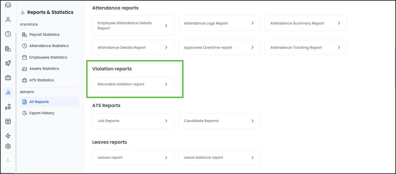 Answer: Yes, reports on "Recorded Violations" can be accessed through the reports and statistics section.