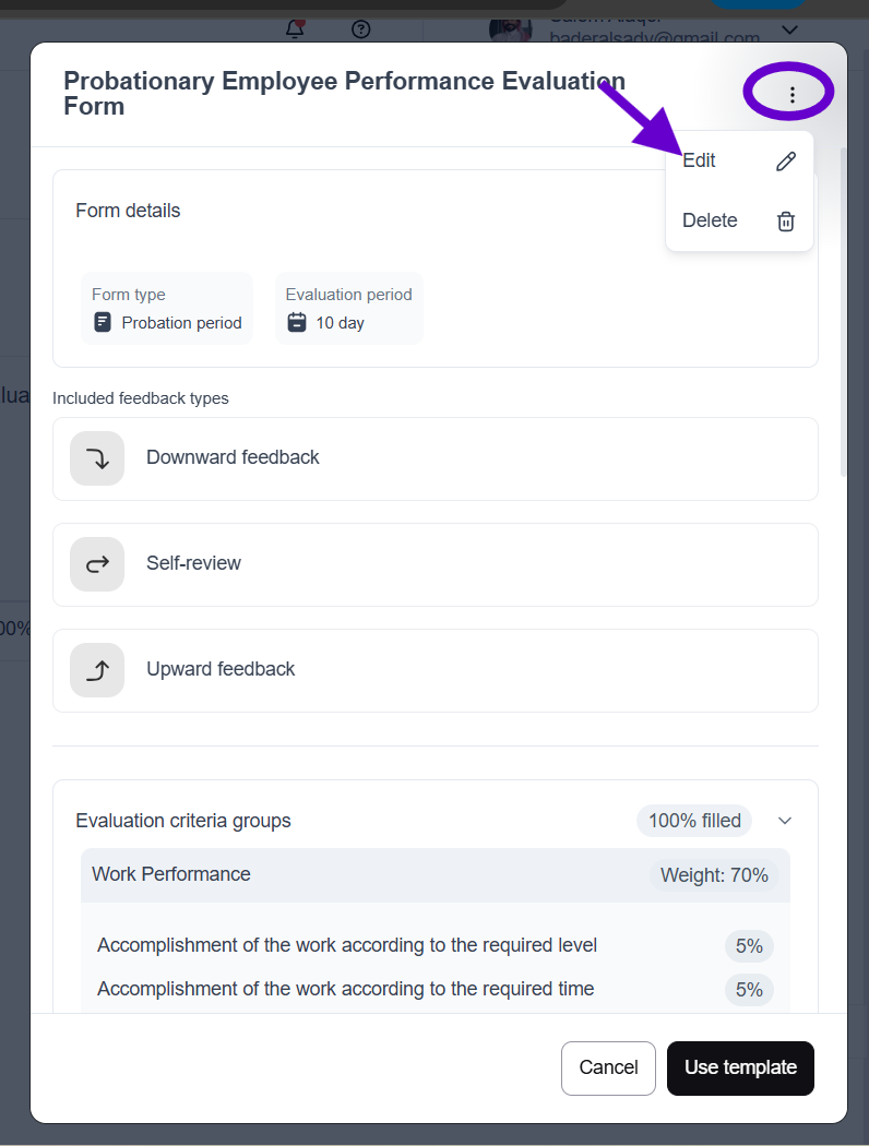 - When using templates to create an evaluation form, they can be fully edited in terms of name, description, form type, and criteria.