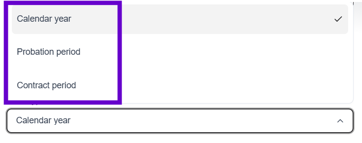 - Contract period: This type is designated for employees whose contracts are nearing their conclusion or renewal. Similar to the probation period type, ensure that the start and submission times of the evaluation are configured to coincide with the end of the contract period.