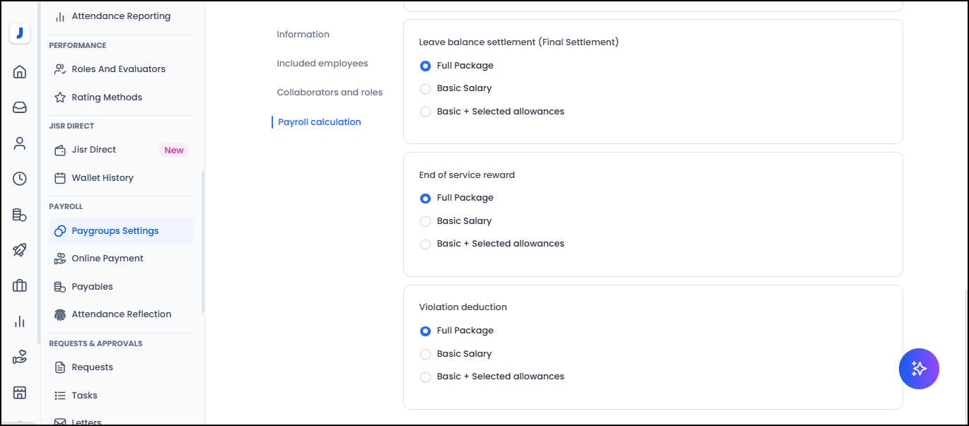 4- In the "Payroll calculation" tab