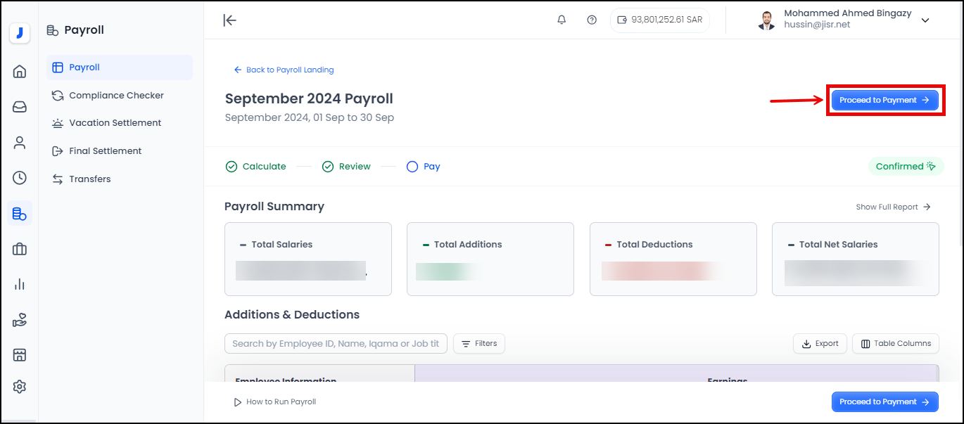 3- Choose the payment method associated with the employees to whom salaries are to be paid (whether it is an electronic payment method or from outside Jisr).