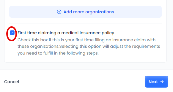 When users indicate that this is their first time claiming medical insurance and proceed with the form, they will be required to provide the following information: