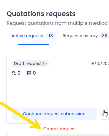 This incomplete request will be listed as an active request with the status 'Draft Request' and no new quotation requests can be created until the draft is submitted. However, requests at any stage can be easily cancelled.