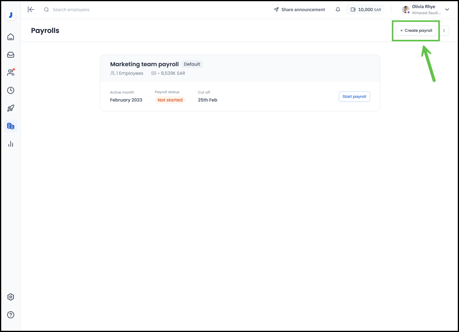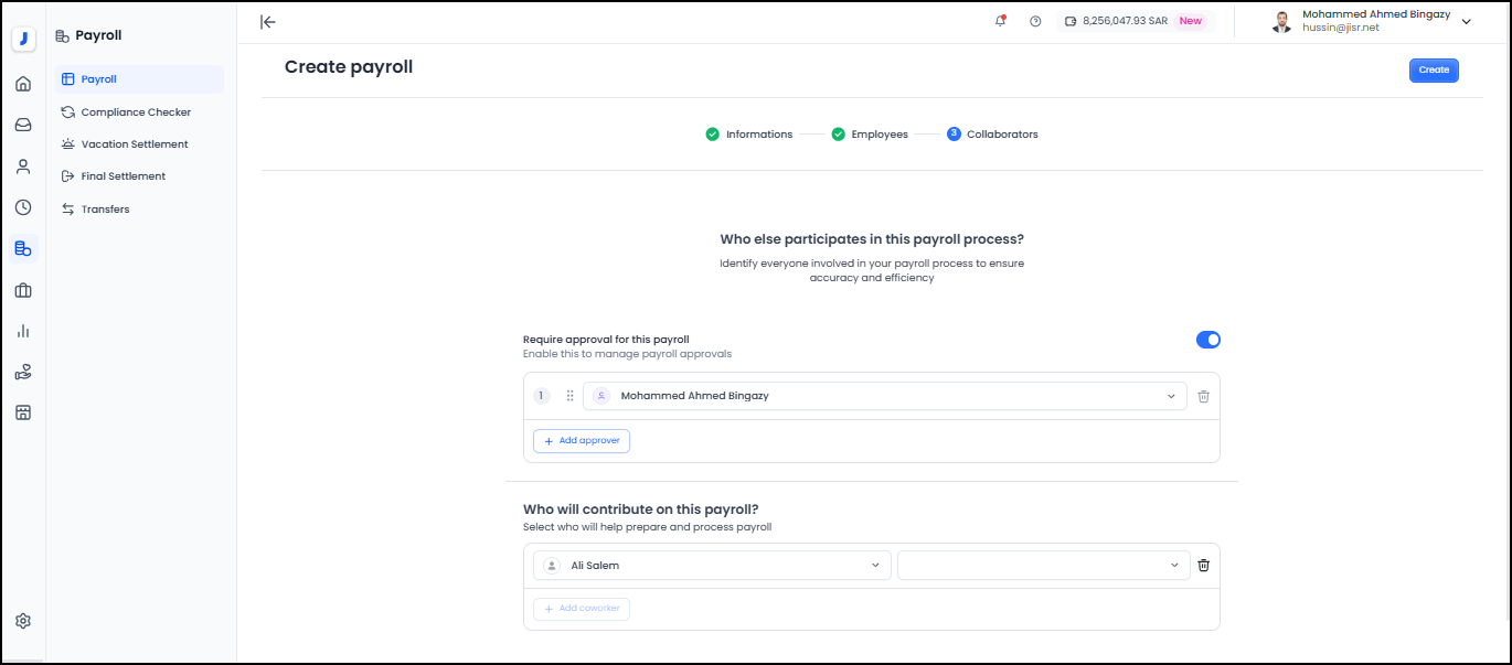 2- At the top of the screen, click on "Create Payroll."