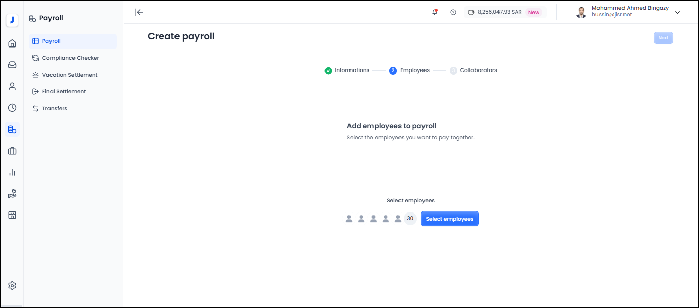 4- Select the employees to be included in the payroll run.