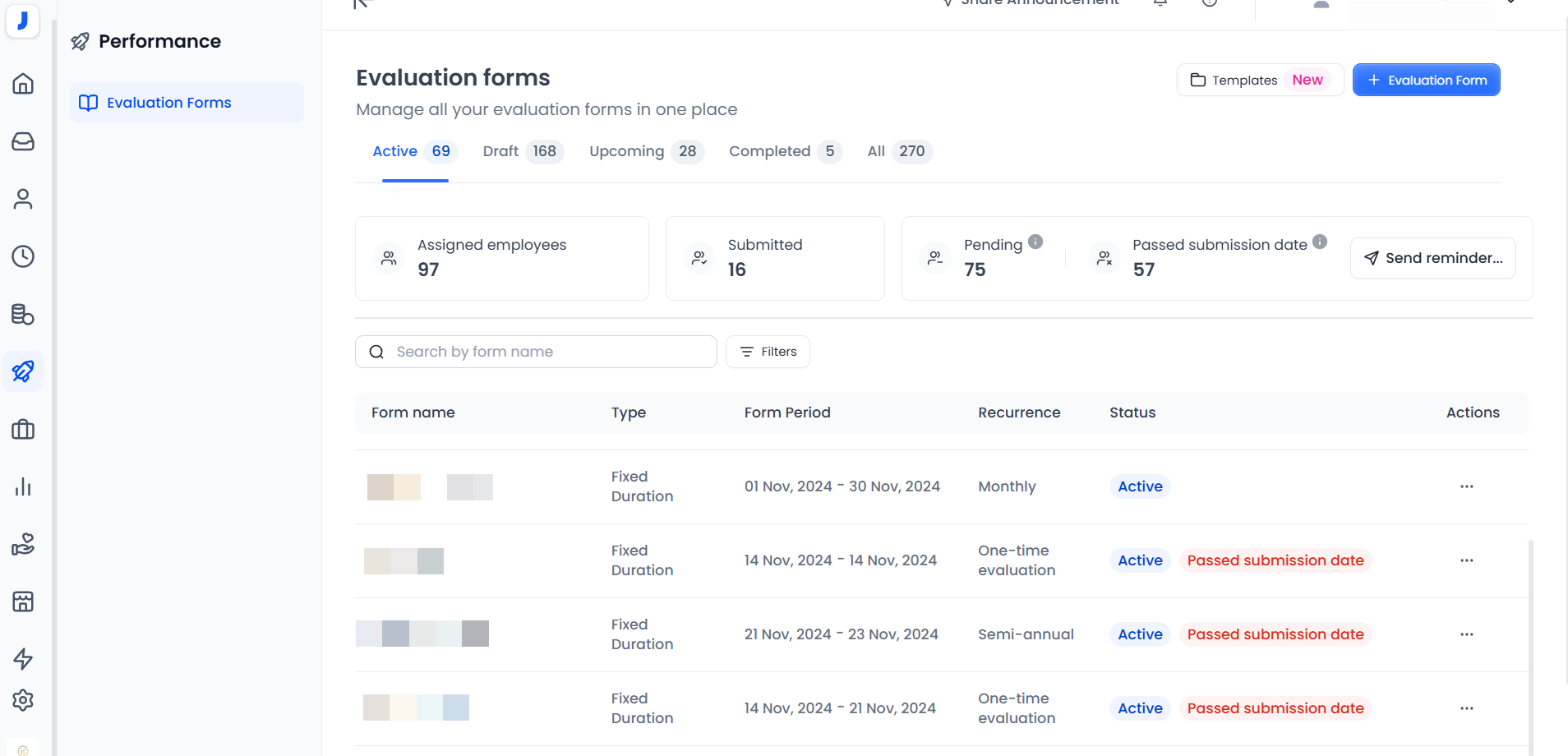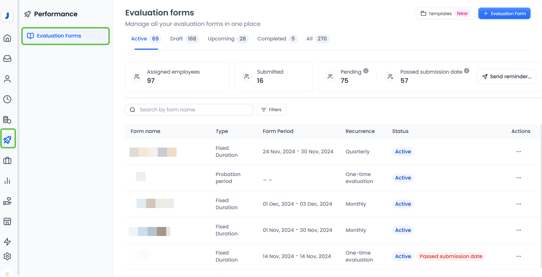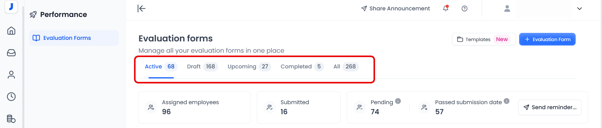 - In the new experience of the performance management system, all the previous types have been unified into a single evaluation template, with different statuses for evaluations: