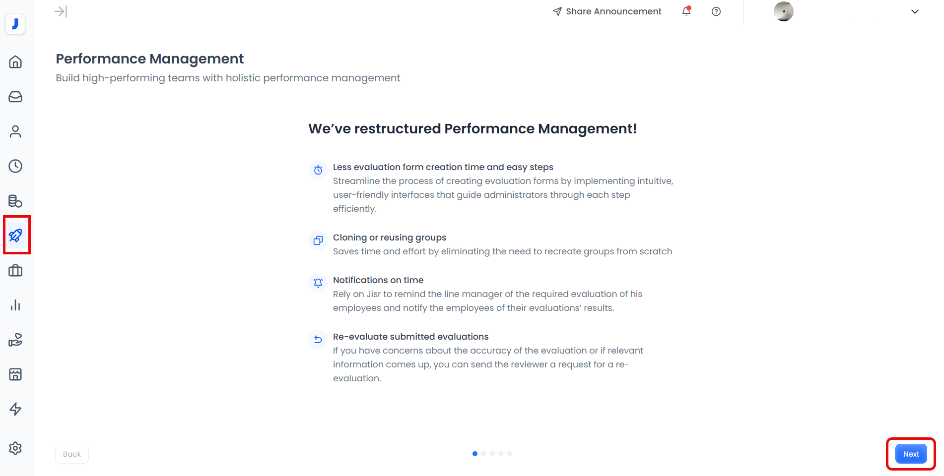 Development of the Performance Evaluation Feature in Jisr: