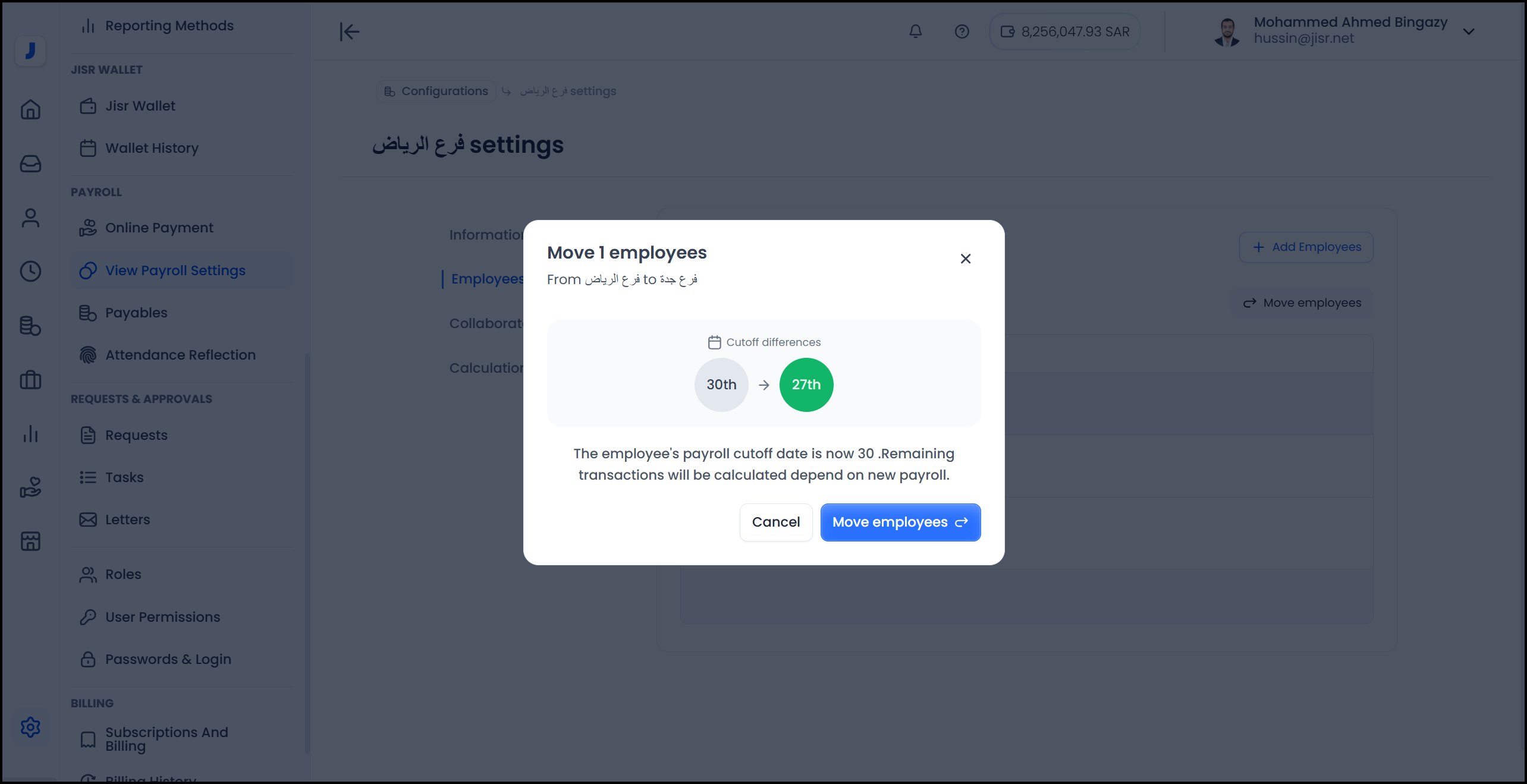 In the Jisr Human Resources system, the feature of 'Transferring an employee from one payroll to another' is a vital tool that facilitates the efficient and smooth management of human resources.