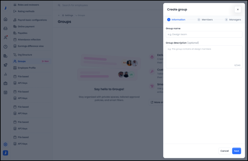 1- The user clicks on “Settings”, then selects “Groups”, then clicks on “Create Group”