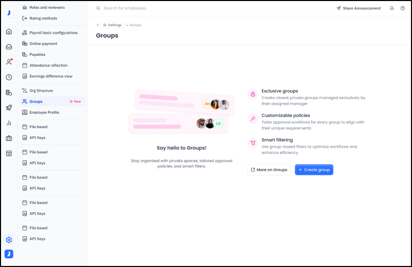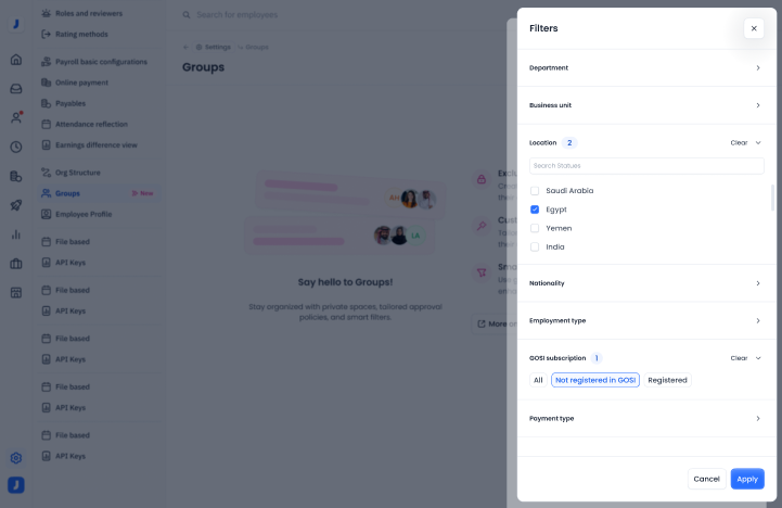 The filter can also be used to search for an employee, to add them to the group.