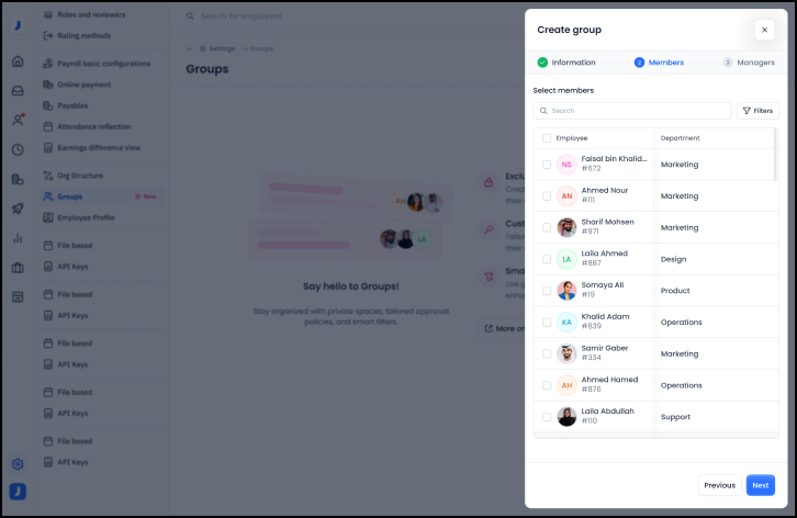 3- Selecting the employees who will be present in the group.