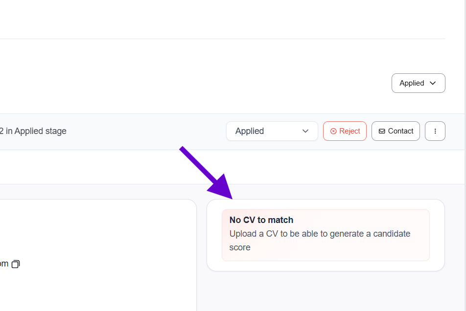 - If a candidate is added without a resumé, a notification will appear indicating that the match score cannot be calculated for this candidate due to the absence of a resumé.
